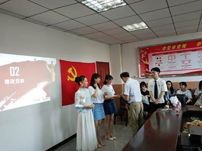 蘭書記向預(yù)備黨員贈(zèng)送黨徽