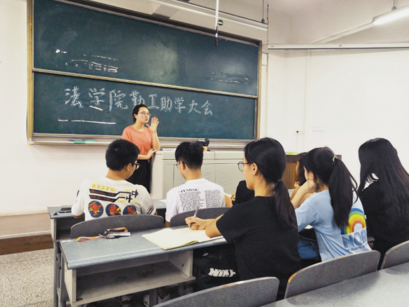法學(xué)院2018-2019學(xué)年勤工助學(xué)大會(huì)于6月27日18時(shí)30分在博學(xué)樓A501準(zhǔn)時(shí)召開,法學(xué)院2015級(jí)輔導(dǎo)員楊可瀚老師組織主持會(huì)議,各年級(jí)部分學(xué)工助理及實(shí)驗(yàn)室學(xué)助參與此次培訓(xùn)總結(jié)大會(huì)。