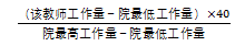 第八條 本科教學工作量評價的分值計算由教學辦公室在秋季學期第17周左右完成。教學工作量評價的分值具體計算方法:如遇教師當年有開新課,則在該課程學時數上乘以1.5的系數計算教學工作量分值;教師每指導1項大學生開放實驗項目(校級)按20學時計算教學工作量分值;教師每指導1項省級大學生創新創業訓練計劃按40學時計算教學工作量分值;教師每指導1項國家級大學生創新創業訓練計劃按80學時計算教學工作量分值。教學工作量分值折合成百分制分數,基準分為60分,按下列公式計算: