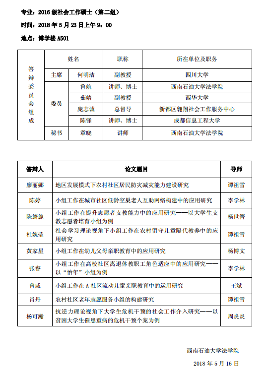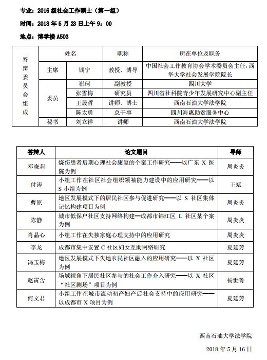 法學院2016級法律碩士專業實踐報告答辯會通知