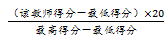 1、對于上述專家聽課、教學文檔、網上評教、現場評教等4項二級指標的原始得分,為防止因不同聽課小組、教研室之間評出的分數差別過大而影響公平,并避免某些二級指標的分數過于集中而影響一級指標權重的合理性,教學辦公室先按下列公式將原始得分轉換為基準分之后再按權重計入考核總分: