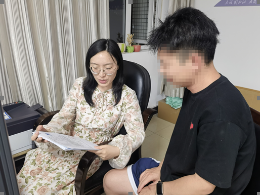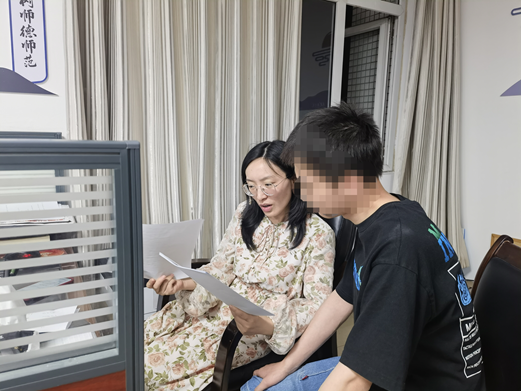 活動中,肖老師首先與學生進行一對一的深入交流,了解遭受網絡暴力的過程和原因,評估他們的心理狀態和具體需求。激勵學生理性發聲,勇于并敢于維護自己合法權益。在隨后的環節中,通過引導學生識別因網絡暴力引起的負面思維模式,改變其錯誤認知,引導兩位同學學習更健康的思考和應對方式。此外,還通過情緒表達的練習和角色扮演小游戲,增強了學生的自我表達和社交互動的能力。