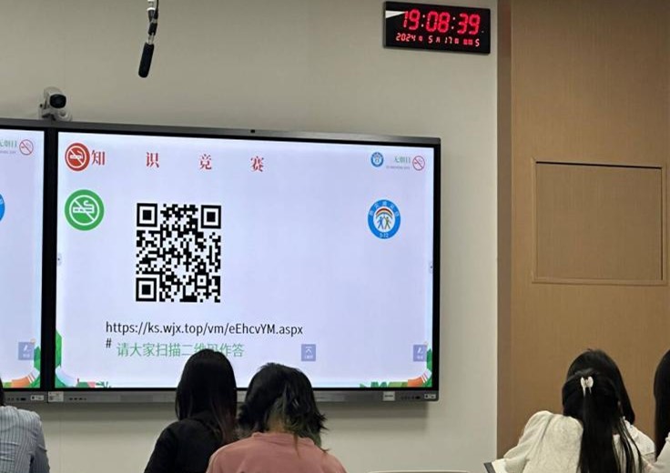 活動開始,主持人先為同學們播放了相關宣傳視頻,在同學們聚精會神地觀看視頻、學習相關知識之后,進入了知識競賽環節,知識競賽環節需要在場的同學們通過掃描屏幕二維碼來完成五十道試題。值得一提的是,此次活動結合了易班線上答題平臺,提高了知識競賽環節的流暢度。
