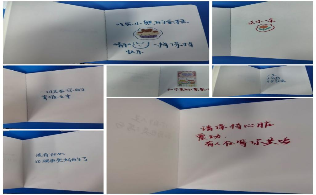 活動(dòng)伊始,同學(xué)們用準(zhǔn)備好的筆在紙條的左側(cè)寫(xiě)下自己目前的煩惱與壓力,盡情發(fā)泄自己的情緒。隨后可以隨機(jī)翻看活動(dòng)精心準(zhǔn)備的“答案之書(shū)”,獲得屬于自己的趣味答案,看看是否與自己的預(yù)期相符合。活動(dòng)后期,同學(xué)們也為他人的煩惱給出“答案”,互相隨機(jī)交換紙條,在紙條的右側(cè)寫(xiě)下對(duì)他人的安慰與鼓勵(lì)。通過(guò)互相“交換”情緒,幫助同學(xué)們更好地理解了不同情緒,提高對(duì)情緒的覺(jué)察和認(rèn)識(shí)。