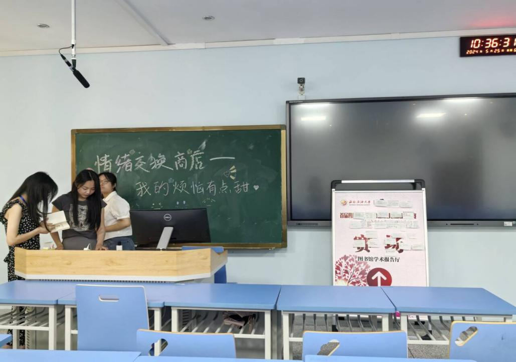 在快節(jié)奏的校園生活中,大學(xué)生們常常會(huì)面臨學(xué)業(yè)壓力、人際關(guān)系、未來(lái)發(fā)展方向以及親情等重重挑戰(zhàn)。在面對(duì)這些挑戰(zhàn)的過(guò)程當(dāng)中,大學(xué)生們通常很容易找不到合適的解決方案而陷入到不停地內(nèi)耗和焦慮的情緒當(dāng)中。這些不良情緒則會(huì)對(duì)同學(xué)們生活的方方面面產(chǎn)生影響,影響他們的心理健康和生活質(zhì)量。為了緩解大學(xué)生們的焦慮的情緒,法學(xué)院于5月25日在線下舉辦了“情緒交換商店—我的煩惱有點(diǎn)甜”心理精品活動(dòng),本次活動(dòng)由法學(xué)院心理服務(wù)站和心理部組織開(kāi)展。