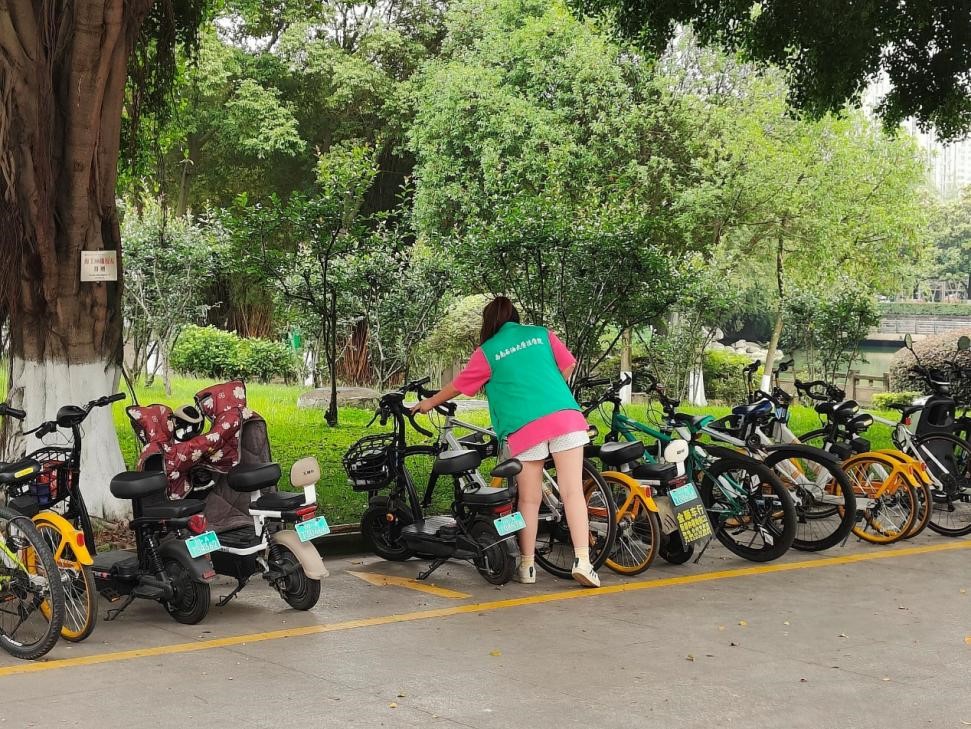 圖二 志愿者在整理電動車停放秩序