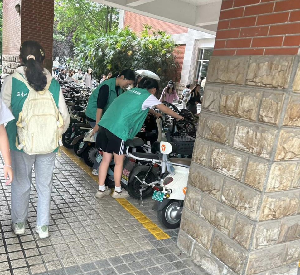 活動期間,青志協的志愿者們提前到達指定區域,為開展電動車停放秩序維護工作做好充足準備。他們身穿統一的志愿者服裝,佩戴明顯的標識牌,以便同學們能夠迅速識別并接受引導。