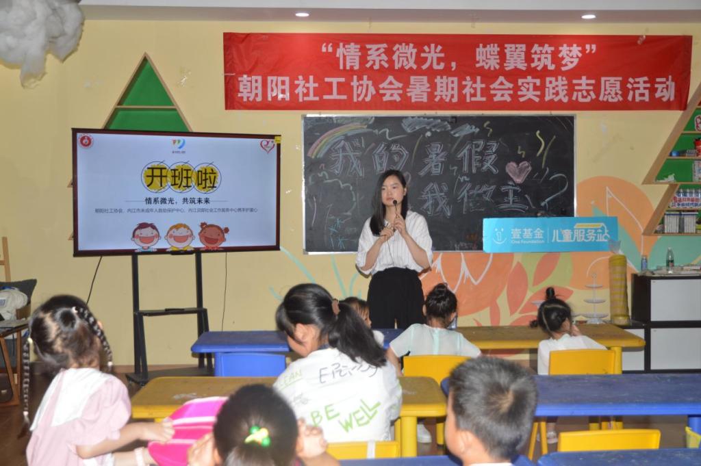 2024年7月8日上午,朝陽社工協會攜手內江市未成年人救助保護中心在內江靈犀社會工作服務中心舉行“守護蝶夢”關愛留守兒童系列活動開班儀式。