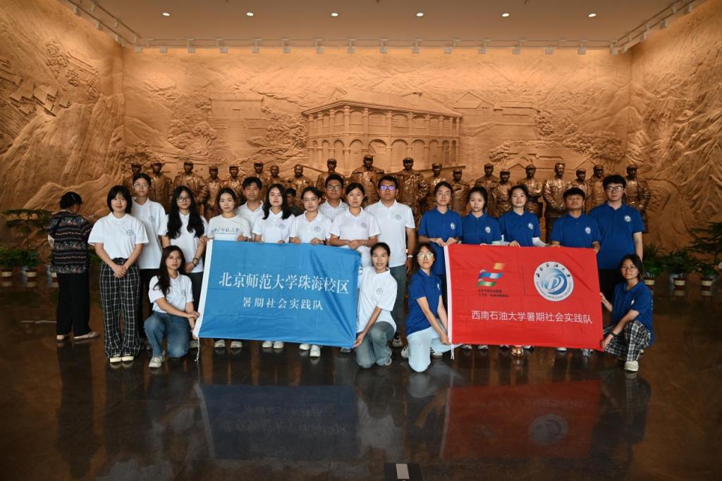 在維持秩序的同時,實踐隊隊員們與來自北京師范大學(珠海校區)、重慶理工大學、成都大學等多所高校的暑期實踐隊伍進行了深入的交流,分享各自在實踐當中的所見所聞、所感所悟。跨校的交流不僅促進各高校之間社會實踐經驗的交流與融合,更是推動了青年學生在革命精神傳承和紅色文化發揚領域的探索。