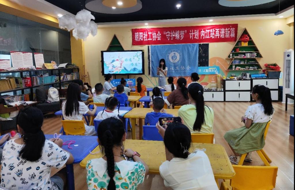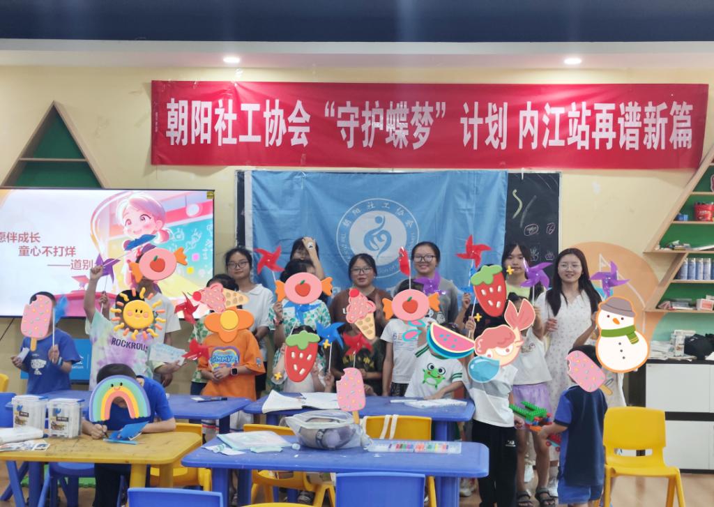 2024年7月15日,朝陽社工協會“情系微光,蝶翼筑夢”實踐隊攜手內江市未成年人救助保護中心在內江靈犀社會工作服務中心,開展“守護蝶夢”計劃,為城市留守兒童舉辦主題為“自然美育之旅——非遺漆扇制作”以及“志愿伴成長,童心不打烊”歡送會活動。