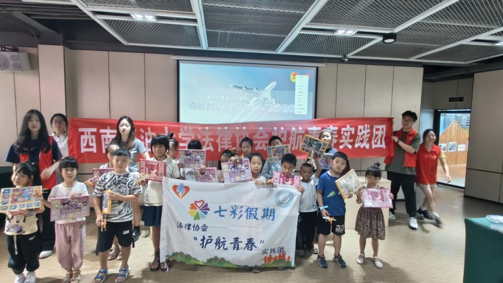 為了普及航空知識(shí),激發(fā)青少年對科學(xué)的興趣與探索欲,西南石油大學(xué)法律協(xié)會(huì)“護(hù)航青春”實(shí)踐團(tuán)于7月9日上午深入新都正因社區(qū),開展了以“飛行的秘密”為主題的科普活動(dòng)。