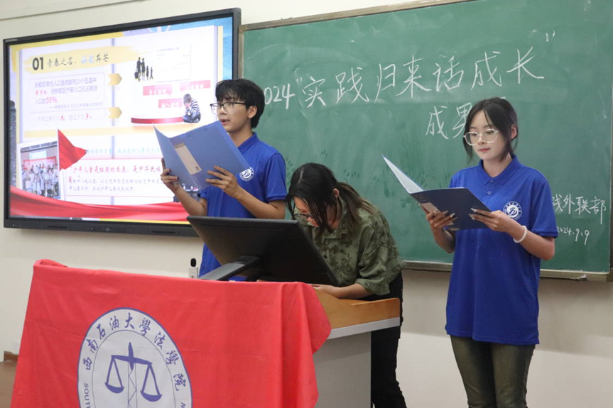 青春正揚(yáng)帆,啟航往無(wú)前。為深化大學(xué)生社會(huì)實(shí)踐教育,促其增長(zhǎng)才干、貢獻(xiàn)社會(huì),同時(shí)為青年學(xué)子樹(shù)立正確三觀(guān),激發(fā)創(chuàng)新精神與實(shí)踐能力,西南石油大學(xué)法學(xué)院團(tuán)委實(shí)踐外聯(lián)部“實(shí)踐歸來(lái)話(huà)成長(zhǎng)”暑期社會(huì)實(shí)踐成果展示活動(dòng)于9月9日19:00在明辨樓C205成功舉辦。本次活動(dòng)邀請(qǐng)了法學(xué)院團(tuán)委書(shū)記兼2021級(jí)輔導(dǎo)員鄧超越、2022級(jí)輔導(dǎo)員邵梧梟、2023級(jí)輔導(dǎo)員雷婷以及2024級(jí)輔導(dǎo)員肖丹老師擔(dān)任評(píng)委。