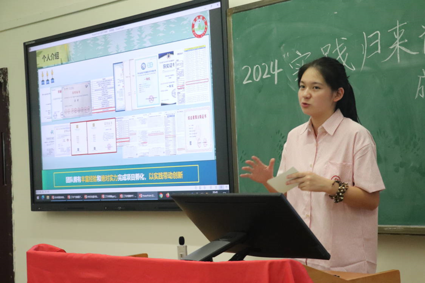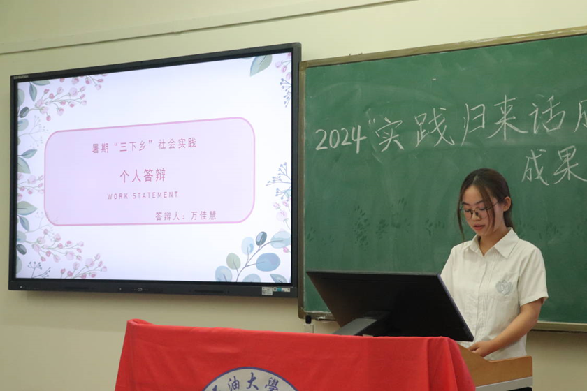 活動(dòng)精心策劃,為各實(shí)踐隊(duì)充分提供展示的舞臺(tái)。活動(dòng)分為優(yōu)秀實(shí)踐團(tuán)隊(duì)風(fēng)采答辯與優(yōu)秀個(gè)人心得交流兩大環(huán)節(jié)。團(tuán)隊(duì)代表們生動(dòng)講述實(shí)踐故事:有的團(tuán)隊(duì)深入革命老區(qū),探索現(xiàn)代農(nóng)業(yè)發(fā)展模式,深刻領(lǐng)悟黨的精神對(duì)鄉(xiāng)村振興的精神引領(lǐng)作用;有的團(tuán)隊(duì)通過(guò)實(shí)地調(diào)研、深度訪(fǎng)談,感受中華優(yōu)秀傳統(tǒng)文化中蘊(yùn)含的深遠(yuǎn)意義;還有的團(tuán)隊(duì)秉持法治引領(lǐng)的理念,以寓教于樂(lè)的方式,讓青少年在歡樂(lè)中學(xué)習(xí)法律知識(shí),激發(fā)愛(ài)國(guó)情懷。隨后,優(yōu)秀個(gè)人分享了他們的親身經(jīng)歷,有的擔(dān)任隊(duì)長(zhǎng),運(yùn)籌帷幄,確保實(shí)踐活動(dòng)順利進(jìn)行;有的負(fù)責(zé)宣傳,多篇新聞稿被各大官方網(wǎng)站采納,積極傳播青春正能量。答辯結(jié)束后,評(píng)委老師鄧超越進(jìn)行了總結(jié)點(diǎn)評(píng)。老師對(duì)參與本次答辯活動(dòng)的同學(xué)從PPT制作、內(nèi)容展示、時(shí)長(zhǎng)控制等方面提出建議;同時(shí)鼓勵(lì)2024級(jí)的同學(xué)們珍視社會(huì)實(shí)踐機(jī)會(huì),從本次活動(dòng)成果展中汲取經(jīng)驗(yàn),將理論知識(shí)與實(shí)踐緊密結(jié)合,展現(xiàn)出新時(shí)代大學(xué)生的蓬勃朝氣。
