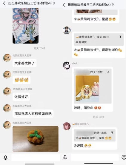 制作完成后,主持人邀請參與同學在活動群內分享自己的作品,并組織投票評選。大家互相欣賞,用贊美和夸獎的話語溫暖自己和他人,一種治愈感在活動中靜默流淌。