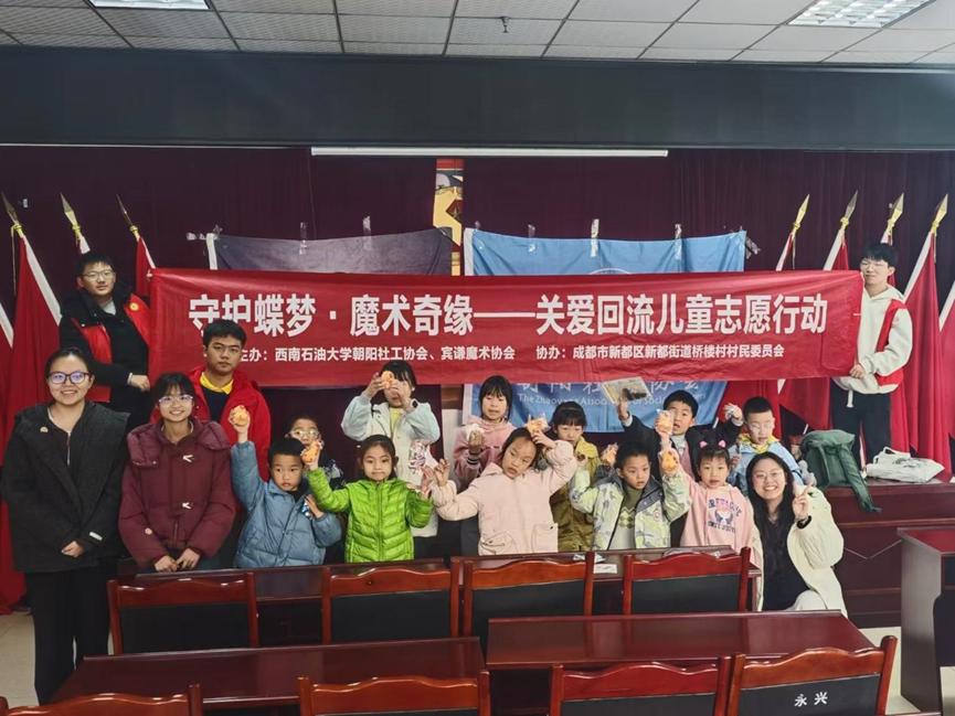 “孤影寂寂守空巢,童真期盼暖陽照。”為緩解同流兒童心理壓力,提高其社會適應(yīng)能力。2024年11月30日上午 ,由西南石油大學(xué)法學(xué)院賓謙魔術(shù)協(xié)會攜手朝陽社工協(xié)會共同組建大學(xué)生志愿服務(wù)團在新都區(qū)新都街道橋樓社區(qū)開展品牌活動,為社區(qū)回流兒童帶去冬日的陽光。