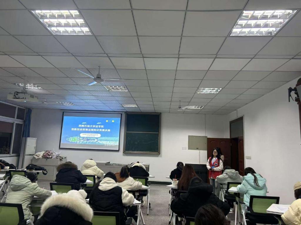 本次知識競賽分為初賽和決賽兩個階段。初賽依托易班APP進行,共設置60道題目,題目內容涵蓋諸多創新創業政策法規。經過前期宣傳,初賽共吸引254名同學參與,其中25名同學進入決賽。決賽采用筆試的方式,共設置40道題目。決賽現場,同學們結合前期學習與思考,仔細審題,認真作答,體現了法學院學子對創新創業政策法規的深刻理解與靈活運用。