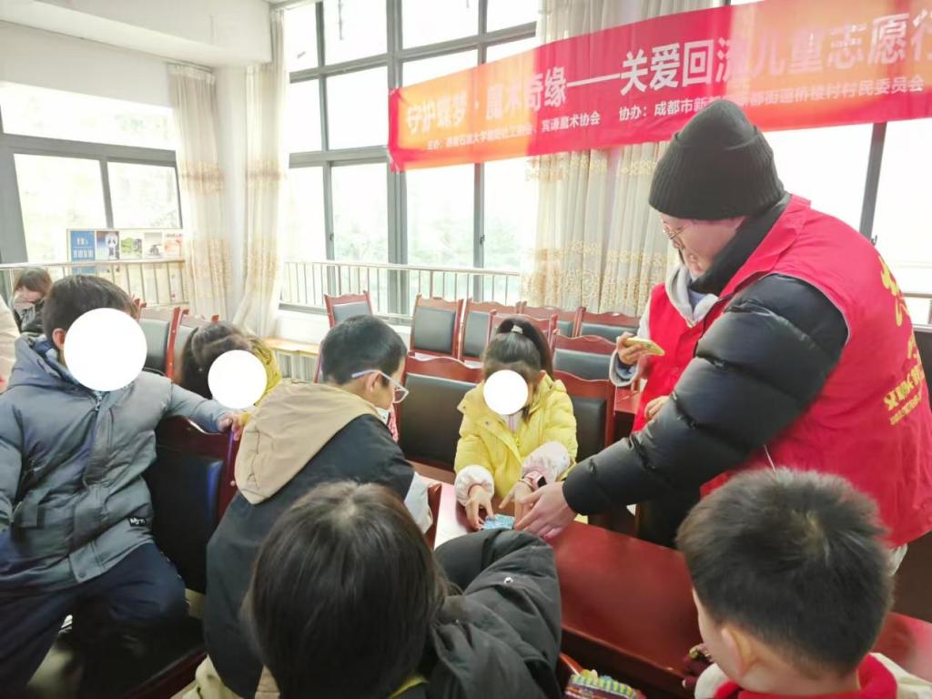 “日腳淡光紅灑灑,薄霜不銷桂枝下”,隨著十二月進入中旬,為了給回流兒童帶來溫暖,讓他們感受到自己在社區里的價值與影響力,西南石油大學法學院賓謙魔術協會聯合朝陽社工協會于2024年12月14日在成都市新都區新都街道橋樓村開展“大手牽小手”童心暖陽茶話會,以真摯愛心傳遞正能量,用親身實踐帶來溫暖。