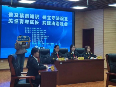 12月20日,“法治紅星”宣講團走進新都一中,開展模擬法庭進社區主題黨日活動,將一場生動的禁毒模擬法庭展演呈現在同學們眼前,引導新都一中青年學生遠離毒品,珍愛生命。