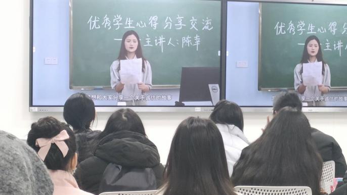 為了增強班會的互動性和趣味性,班會設計了精彩的互動環節。首先,誠信小劇場播放了關于電影《天才槍手》的相關片段,并邀請了班級同學進行現場表演。同學們通過生動的演繹,進一步加深了對誠信考試的理解。接著,班會進入了誠信故事分享會環節,同學們紛紛上臺分享了自己或身邊人關于誠信的小故事,這些故事感人至深,引人深思。