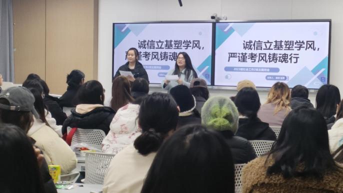 2024年12月19日上午10點15分,西南石油大學2023級社會工作2班在博學樓A105教室成功舉辦了一場以“誠信立基塑學風,嚴謹考風鑄魂行”為主題的班會。此次班會由班長陸葦和輔導員雷婷老師共同主持,旨在加強班級學風建設,強調誠信考試的重要性,引導同學們樹立正確的考試觀念。