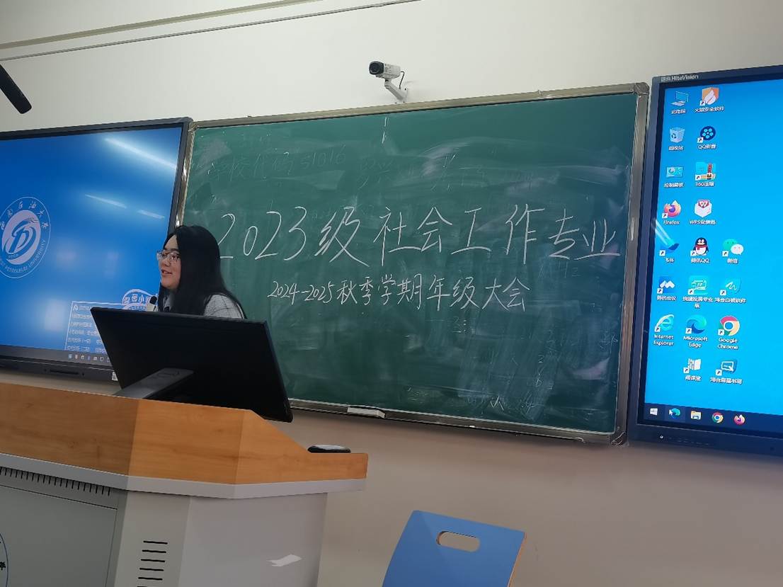 12月15日,法學(xué)院社會(huì)工作專業(yè)期末年級(jí)大會(huì)在博學(xué)樓B502如期舉行,本次大會(huì)由輔導(dǎo)員雷婷老師主講。大會(huì)不僅總結(jié)了本學(xué)期的學(xué)習(xí)與工作情況,強(qiáng)調(diào)了安全問題,還特別設(shè)置了師生交流環(huán)節(jié),雷老師與同學(xué)們深入交流了近期的生活學(xué)習(xí)狀態(tài),并現(xiàn)場答疑解惑。