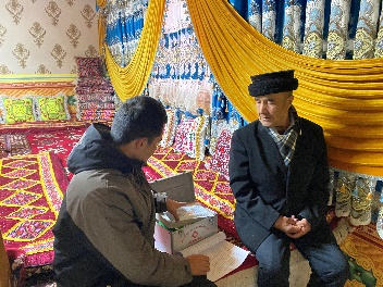 家在新疆省維吾爾自治區的“青禾筑夢”團隊成員依力亞斯·買買提汗同學是法學院22級的一名退伍復學大學生。雖已退伍,但絕不褪色。本著勵志篤行的初心與擔當,依力亞斯同學于2025年1月28日在新疆阿克陶縣塔爾塔吉克民族鄉阿克庫木村進行走訪,宣傳國家對少數民族地區公民的給予的各項優惠政策,向村民普及大學生資助政策,同時也給村中老人提供了各種生活上力所能及的幫助。