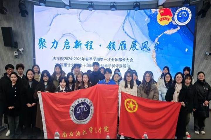 陽春三月,歲序更替,萬物勃發。為激發學生干部在思想引領和成長服務中的主觀能動性,精準錨定新學期工作航向,我院于3月7日午時,在思學樓C110舉行法學院2024-2025學年春季學期首次學生干部大會,同時開展“領雁計劃”學生干部成長訓練營優秀學員評比活動。法學院團委書記鄧超越、輔導員楊梓因、肖燦、主席團以及團委、學生會、社團聯全體部長參加了本次活動。