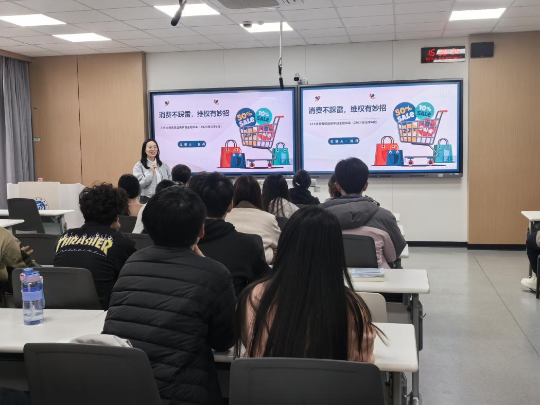 本次主題班會圍繞消費者權益日由來、相關權益內容、如何維權以及維權成功案例分享等四個部分展開。肖丹老師先由去年3·15晚會的精選視頻片段引入主題,引導同學互動生活中遇到的消費問題,再導入3·15消費者權益日由來歷史。其后,肖丹老師運用生活案例逐一介紹了消費者的九大權益,讓學生清楚了解權益內容和法律邊界。肖老師用生動的案例和視頻素材,向學生們娓娓道來維權的途徑和適用場景。她提醒學生在購買商品和服務時一定要仔細查看商家的信譽評級和商品成分、價格、產地、有效期等相關信息,同時謹防商家強制交易或捆綁銷售,購買后及時索要收據、發票或其他書面證明材料,以便在受到侵害后有效進行索賠。肖丹老師的講述緊密關聯日常生活學習場景,把相關概念的界定、維權途徑和選擇方式等深入淺出進行了介紹,學生們仔細聆聽,積極參與互動。