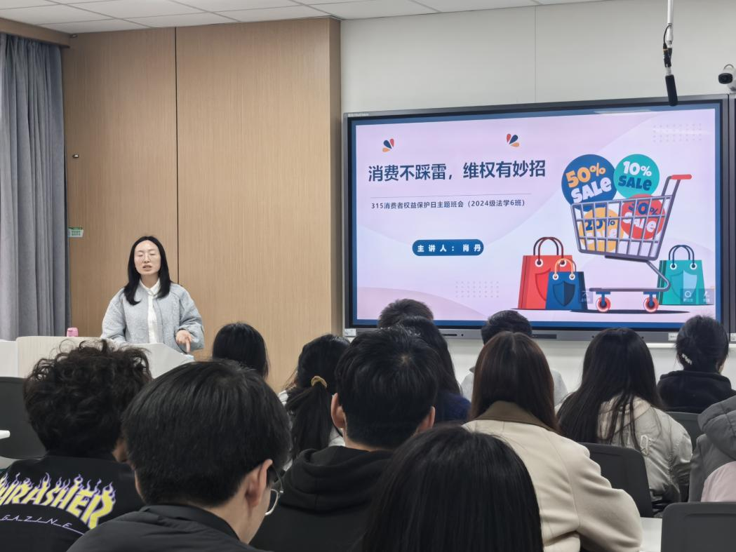 在消費環境日益復雜的當下,為切實提高學生反詐意識,防范消費詐騙,增強學生維權能力,共建和諧平安校園,法學院2024級法學6班于3·15前夕召開本次主題班會。本次主題班會由2024級輔導員肖丹老師主講,2024級法學6班全體學生參與。