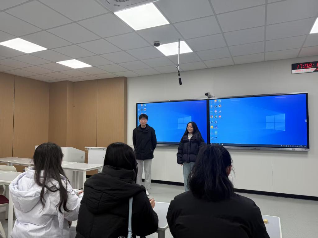 隨后,兩位新同學依次上臺進行自我介紹。他們帶著對未來的憧憬,分享了自己的興趣愛好、轉專業的原因以及對新專業的期待。秦筱軻同學表示,是因為對新專業的濃厚興趣,促使她勇敢地做出轉專業的決定;王常伍同學則希望通過轉專業,開啟全新的學習生活,挑戰自我,實現自己的夢想。他們的真誠與熱情感染了在場的每一個人,同學們紛紛報以熱烈的掌聲,為新同學加油鼓勁。