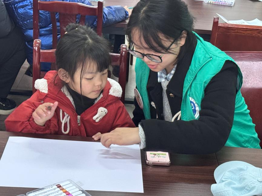 志愿者指導兒童畫畫