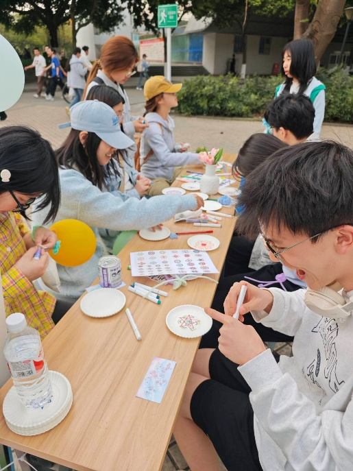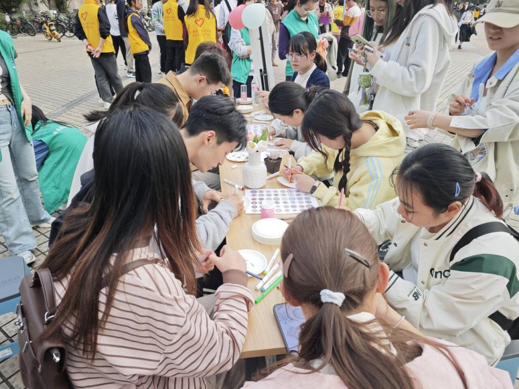 活動開啟前,心理中心就為各學院準備了充足的物資。各學院的展位在志愿者們的精心布置下各具特色,充滿了創(chuàng)意與活力。參與者們手持入場券,穿梭于各個展位之間,臉上洋溢著期待與興奮。