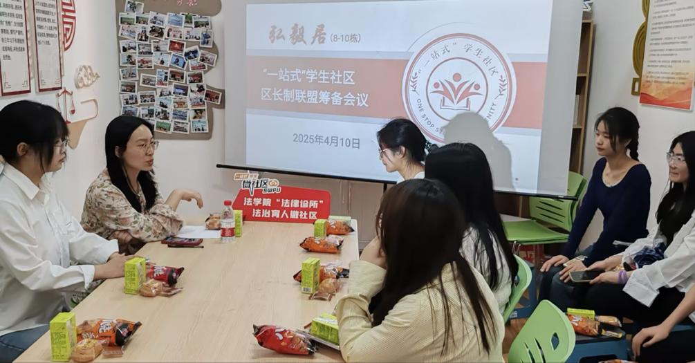 為深入探討并推進活力、友愛型學生社區的建設工作,2025年4月10日,法學院牽頭弘毅居(8-10棟)“一站式”學生社區學生骨干聯盟會在8-125召開。此次推進會由肖丹老師主持,弘毅居片區相關學院的學生骨干參與會議。