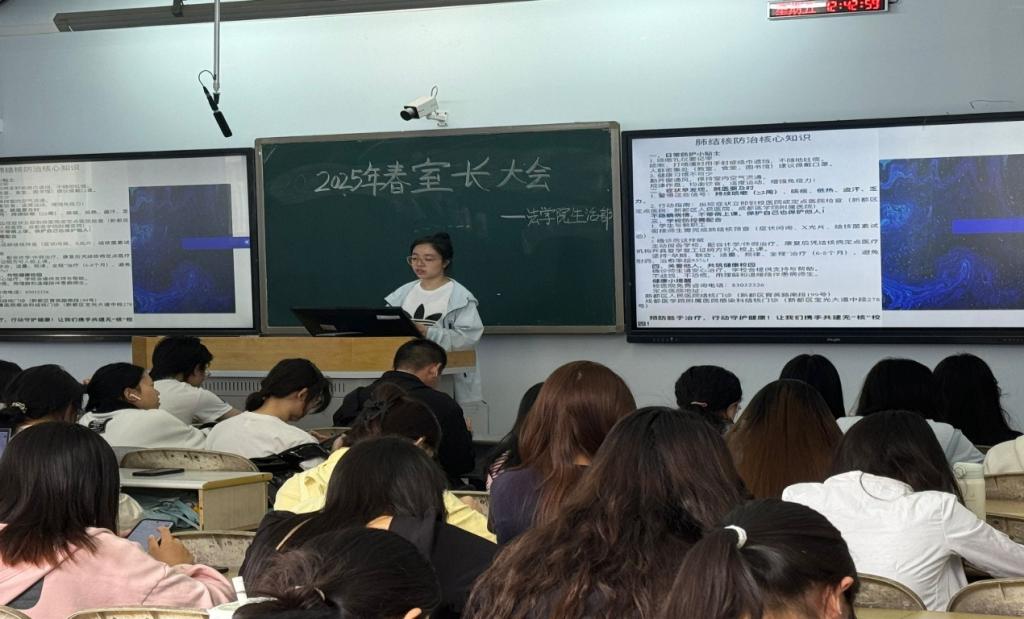 會議首先聚焦于綜測A1項變化,詳細解讀了新版評分體系:將加大優秀寢室的加分力度,同時加重對不達標寢室的扣分懲罰。生活部通過公布檢查評分標準,明確了室風建設的要求,引導同學們構建整潔無異味的良好寢室生活環境。面對寢室安全隱患,生活部進行了內務防災減災宣傳,科普了寢室內常見的風險問題類型,并對如何預防和應對相應突發問題開展了教育。針對春季高發傳染性疾病防控,重點講解了肺結核的防治核心知識,以提高同學們的疾病防范意識。會議后半程則聚焦校園生活安全,舉例科普了寢室用電安全的重要性,并提醒同學們注意日常生活中的交通及宿舍安全。同時本次會議激勵寢室長在日常生活與學習中發揮好積極的帶頭作用,加強與同學之間的聯系。最后法學院宣布了年度“特色寢室評選活動”的啟動。評選包含“學習示范型”“科技創新型”“衛生標兵型”等六類不同的星級寢室,旨在激勵同學們以寢室為單位,共同營造積極向上的學習與生活氛圍。