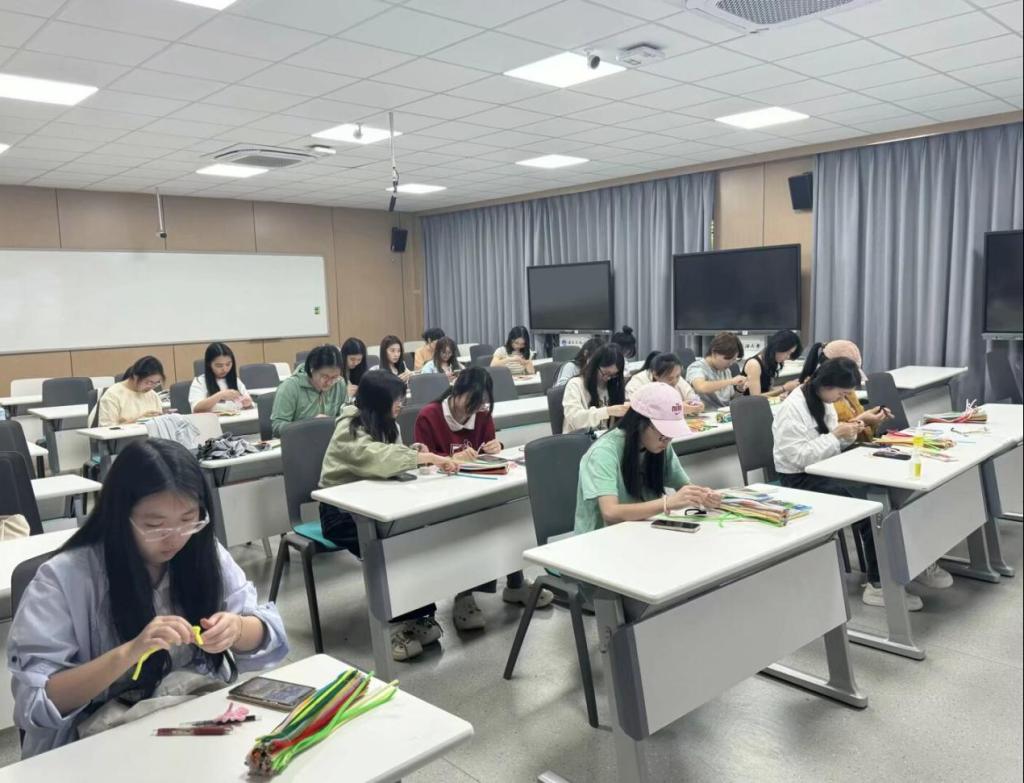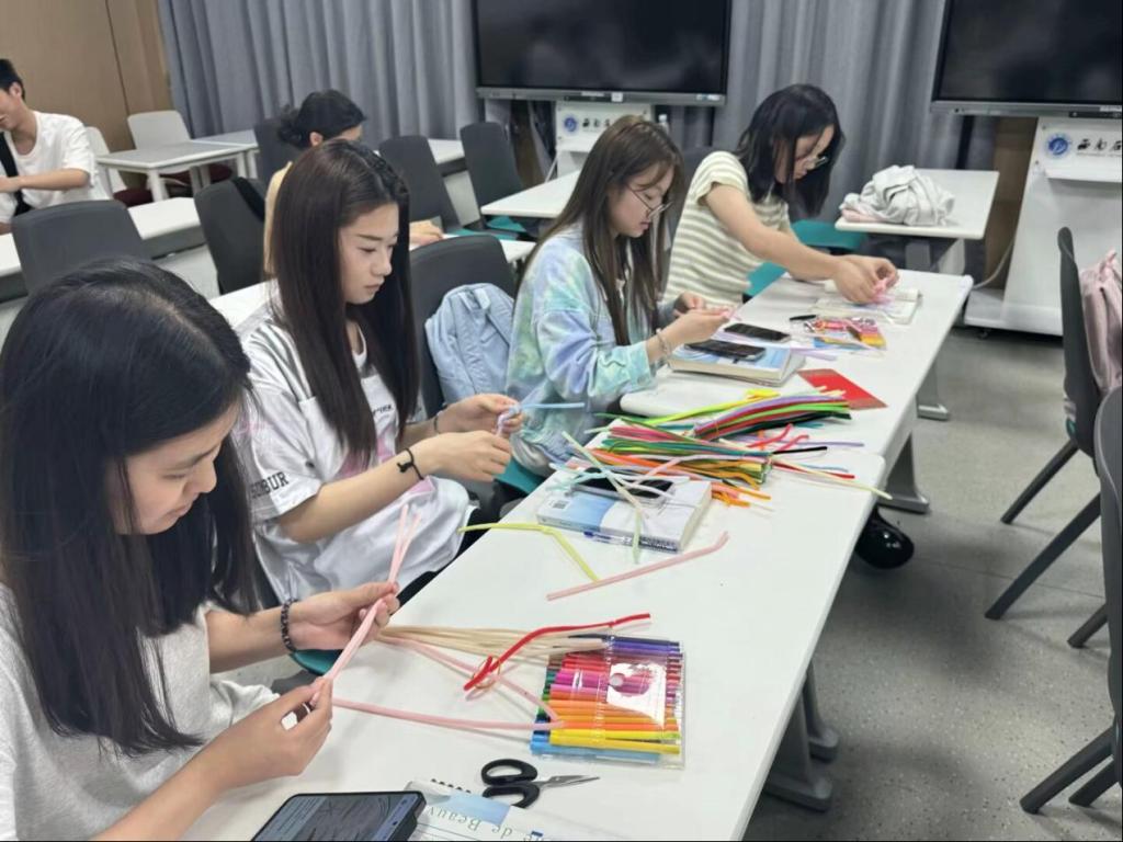 活動將知識與創意實踐相結合,首先以一場生動的環保知識宣講拉開序幕,主持人通過詳細地講解與分析,向同學們揭示了當前地球面臨的生態挑戰。隨后,參與者們沉浸式體驗了“扭出地球新‘花’樣”環節——利用彩色扭扭棒編織地球圖景?;顒又校魑煌瑢W樂在其中,充分發揮想象力,利用彩色扭扭棒制作了多種以地球為主題的手工作品。通過手工創作,同學們不僅感受到環保藝術的樂趣,更直觀理解了保護地球生態多樣性的重要性。