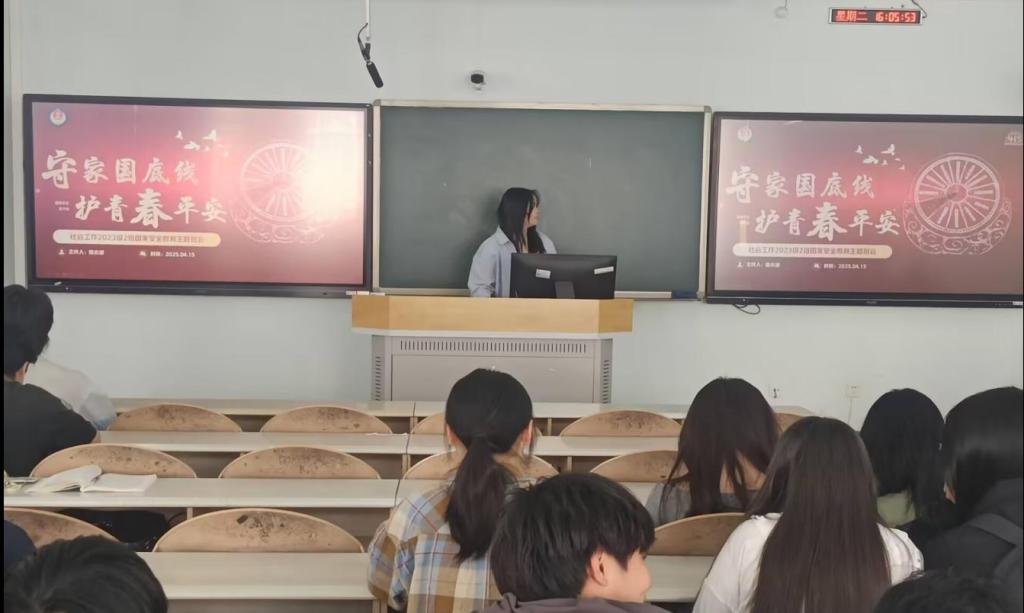 2025年4月17日下午4時(shí),西南石油大學(xué)2023級(jí)社會(huì)工作2班在博學(xué)樓B104教室舉辦了一場(chǎng)以“樹(shù)立總體國(guó)家安全觀,筑牢青春安全防線”為主題的班會(huì)。本次活動(dòng)聚焦國(guó)家安全教育,通過(guò)沉浸式學(xué)習(xí)與互動(dòng)實(shí)踐,引導(dǎo)同學(xué)們深刻理解總體國(guó)家安全觀內(nèi)涵,增強(qiáng)風(fēng)險(xiǎn)防范意識(shí),共同筑牢校園安全防線。