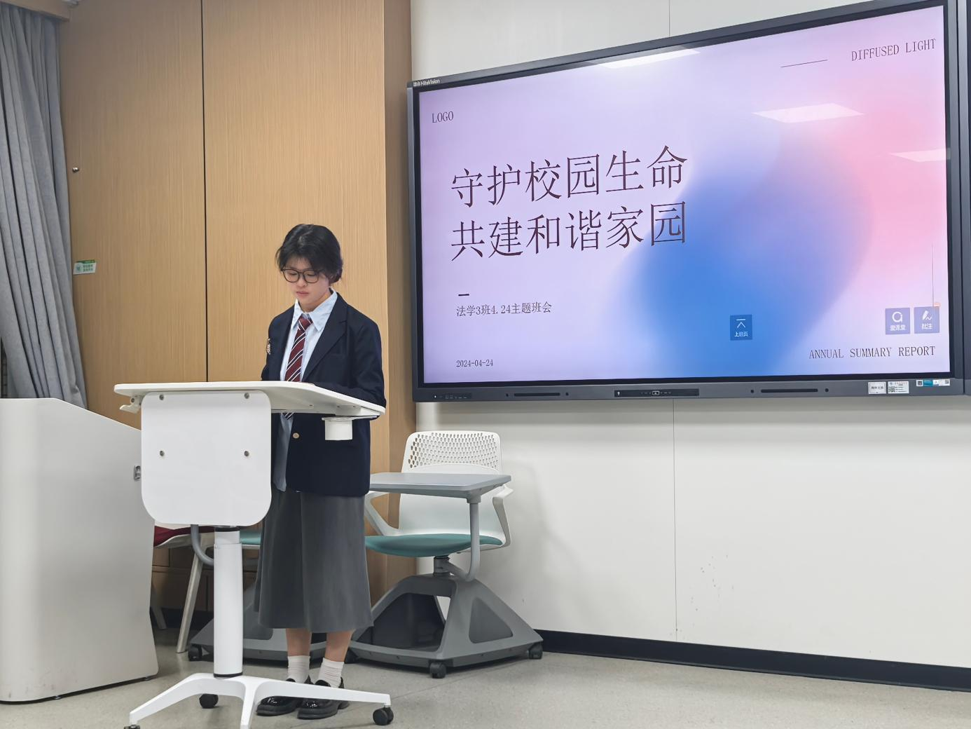 4月24日,法學3班的主題班會在博學樓b105有序開展,本次主題班會以模擬政協的形式展開,36名同學分成了委員組和大眾評審團,17名委員代表分成了四個小組,圍繞著“對校園流浪貓狗的保護”這一主題,引導班級同學關注社會問題,培養公民意識,探索科學、人文的解決方案。