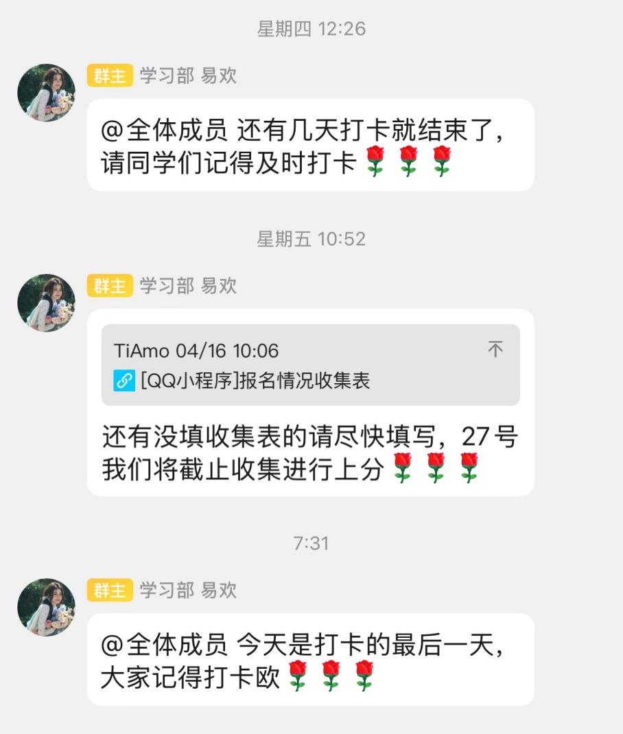 圖二:學習部工作同學激勵同學們堅持每日打卡