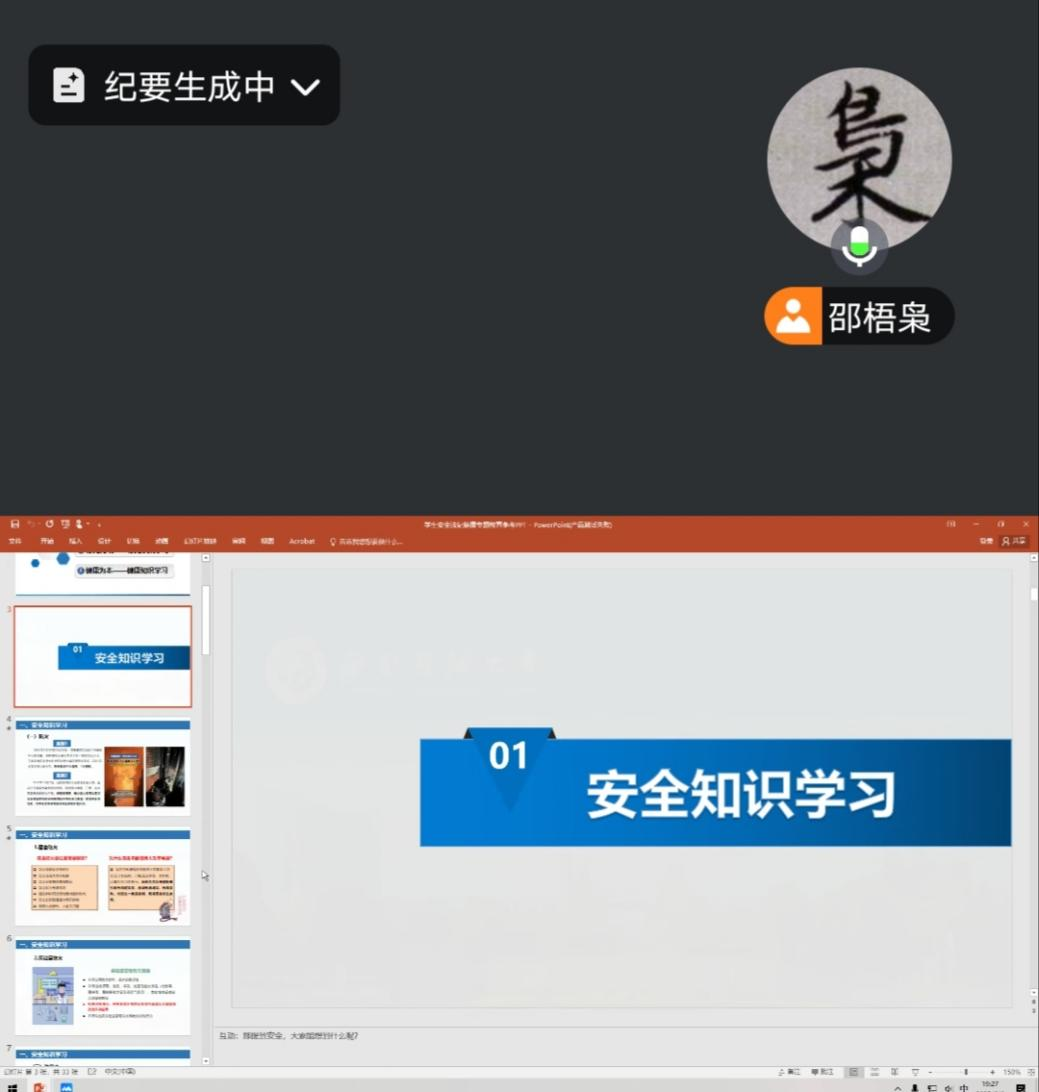 班會中,邵老師講解勞動法律法規的基礎知識,分析其在勞動權益方面的保障,隨后進行安全知識、法紀校規和健康知識的學習,通過真實案例,引起大家對網絡失范行為、偷盜外賣、不假離校、夜不歸寢等違紀違規行為的重視,強化同學們防火、防溺水、防范電信網絡詐騙意識。