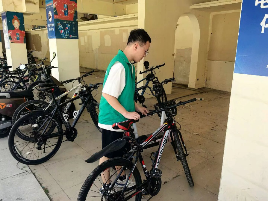 活動當天,由法學院青志協委員及志愿者組成的服務隊分工協作,有條不紊地開展工作。清潔組志愿者手持抹布、清潔劑等工具,對電瓶車車身進行全面擦拭,清除積灰與小廣告,并對銹蝕部位進行防銹處理;整理組則將未按規范停放的車輛移至指定區域,確保消防通道暢通,合理規劃車輛間距以方便取用。活動結束后,志愿者團隊高效完成物資整理與回收,為后續服務奠定基礎。通過此次行動,校園交通環境顯著優化:電瓶車停放區域煥然一新,消防通道阻塞問題得到緩解,師生出行安全得到進一步保障。志愿者們在實踐中傳遞出“勿以善小而不為”的理念,用實際行動踐行綠色出行理念。