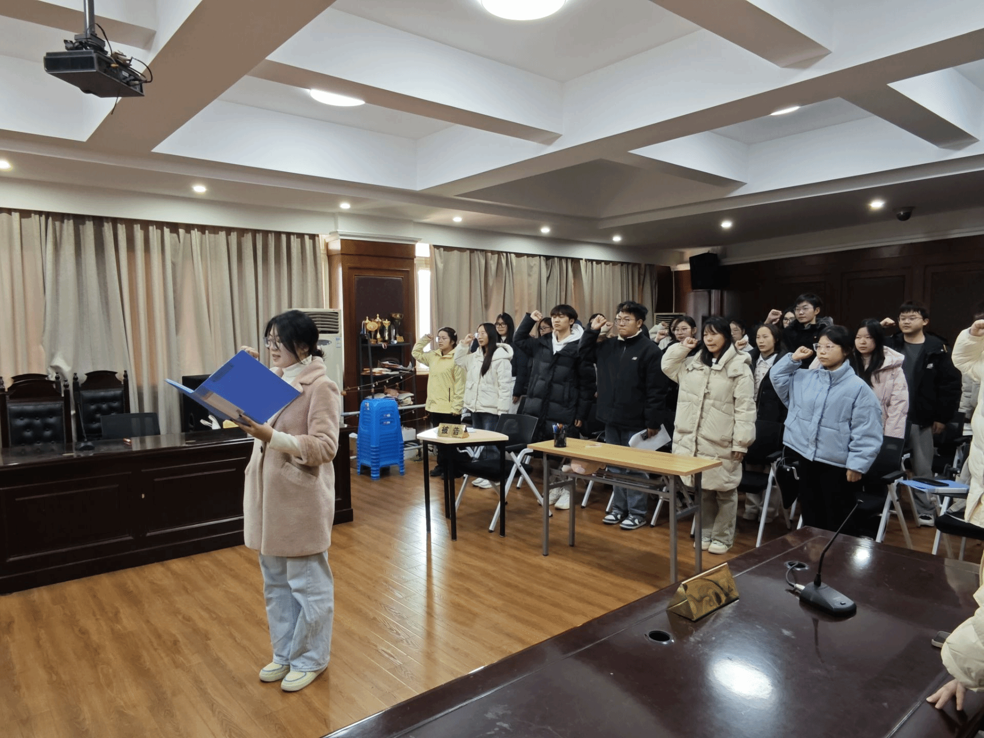 在第九個國家憲法日來臨之際,法學院法學五班于12月31日開展“法護青春,與‘憲’同行”主題班會。