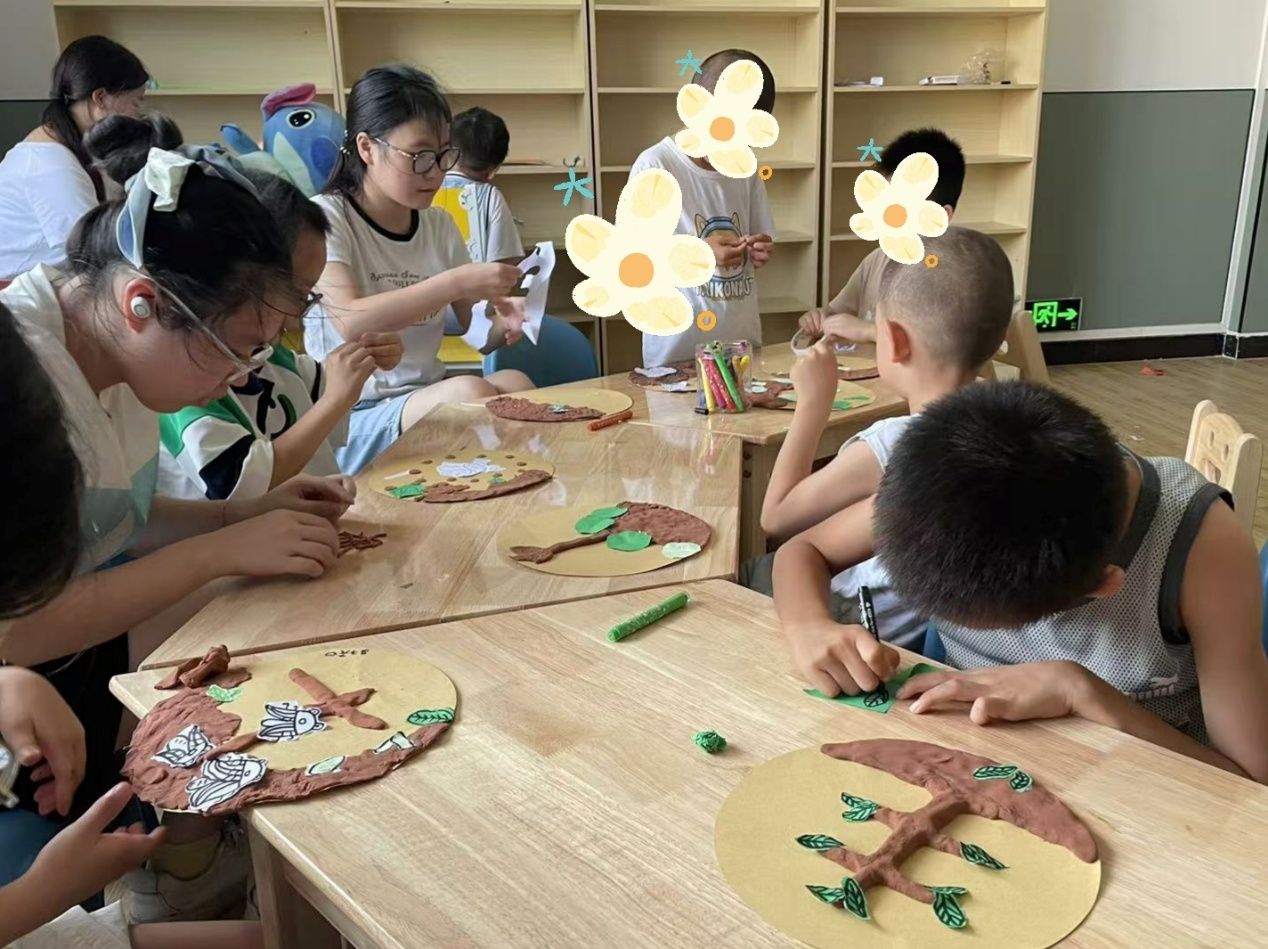 上午,隊員們帶領(lǐng)小朋友繪制“樹與蟬”粘土畫。實踐隊員引導孩子觀察樹的形態(tài)、蟬的特征,隨后用粘土創(chuàng)作。孩子們發(fā)揮想象,揉、捏、粘、貼,將普通粘土變成挺拔的樹、靈動的蟬。專注投入中,動手能力與創(chuàng)造力同步提升,活動室里滿是創(chuàng)意碰撞的歡笑聲,一幅幅粘土畫,繪出對自然的觀察與熱愛。下午,隊員開展普法課堂增強小朋友的法律意識。實踐隊以情景演繹呈現(xiàn)霸凌等場景,直觀展現(xiàn)危害,再通過問答、案例剖析,教孩子識別霸凌、掌握“拒絕、求助、互助”應對方法。孩子們積極互動,從懵懂到清晰認知,樹立起自我保護與關(guān)愛他人的意識,為和諧校園添磚加瓦。