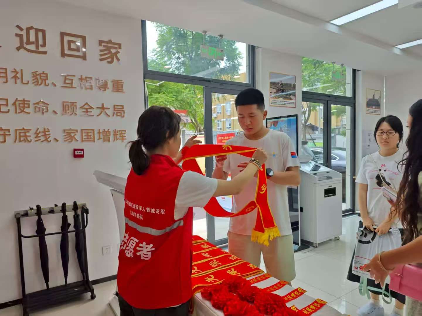 在現(xiàn)場,志愿者們協(xié)助開展返鄉(xiāng)退役軍人引導(dǎo)服務(wù),為退役軍人指引出站路線、搬運行李,配合工作人員完成信息登記、資料核對等基礎(chǔ)行政輔助工作。同時,志愿者們通過合影打卡、微笑問候、贈送紀念小卡片等方式,為退役軍人營造出溫馨的迎接氛圍,讓他們在返鄉(xiāng)的第一時間就感受到了家鄉(xiāng)的溫暖與關(guān)懷。