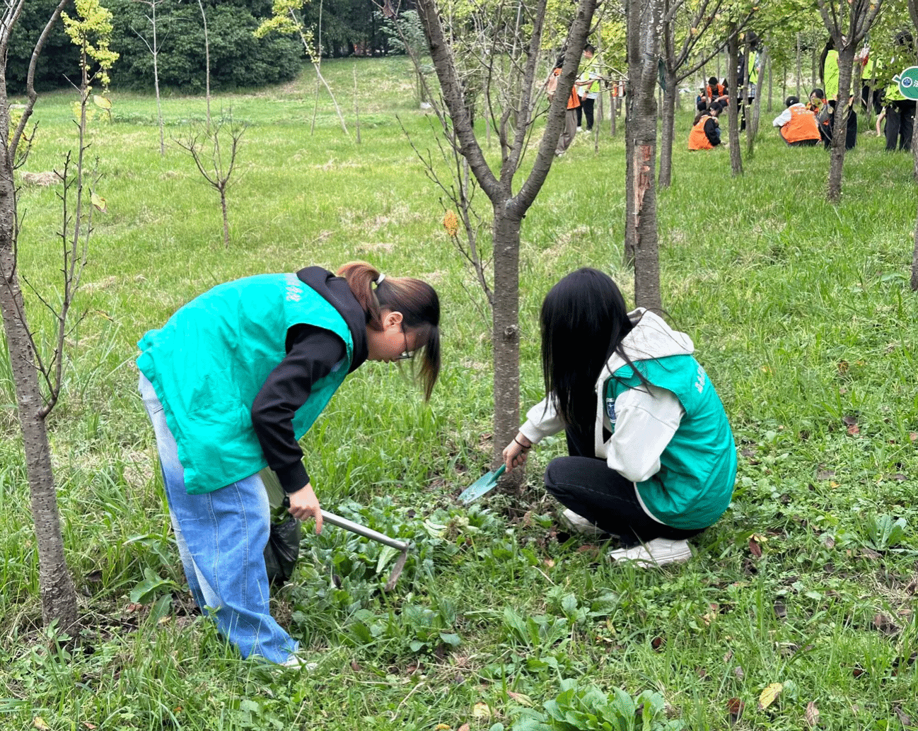“小法柚”志愿者認(rèn)真地用鏟子除草