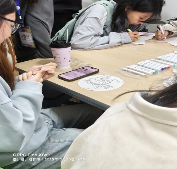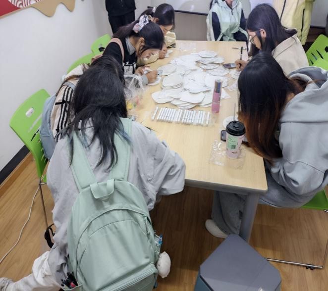 本次活動以“空白扇面”為情感傳遞載體,參與者隨機領取其他同學的空白扇子,憑借初識印象或主動交流觀察,為扇子主人“畫像”,扇面完成后匿名展示,后續“認領”環節將活動推向高潮。活動尾聲,大家圍坐一圈,分享參與此次“扇繪識人”之旅的感受。同學紛紛表示,這個活動讓他們放下了“社交恐懼”,在輕松愉快的創作與互動中,自然而然地認識了新朋友,感受到了校園大家庭的溫暖與包容。