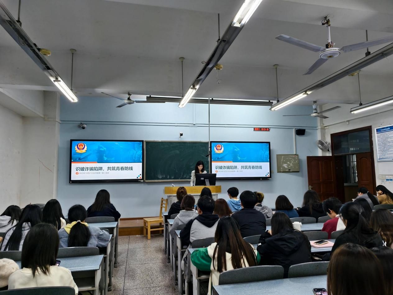 2025年10月21日晚,西南石油大學法學院2024級法學1、2、5、6班在博學樓A202教室聯合舉辦了一場以“識破詐騙陷阱,共筑青春防線”為主題的防范電信網絡詐騙專題班會。此次班會旨在響應國家全民反詐號召,提升大學生對各類電信網絡詐騙的識別與防范能力,筑牢校園安全防線,守護同學們的財產安全與身心健康。