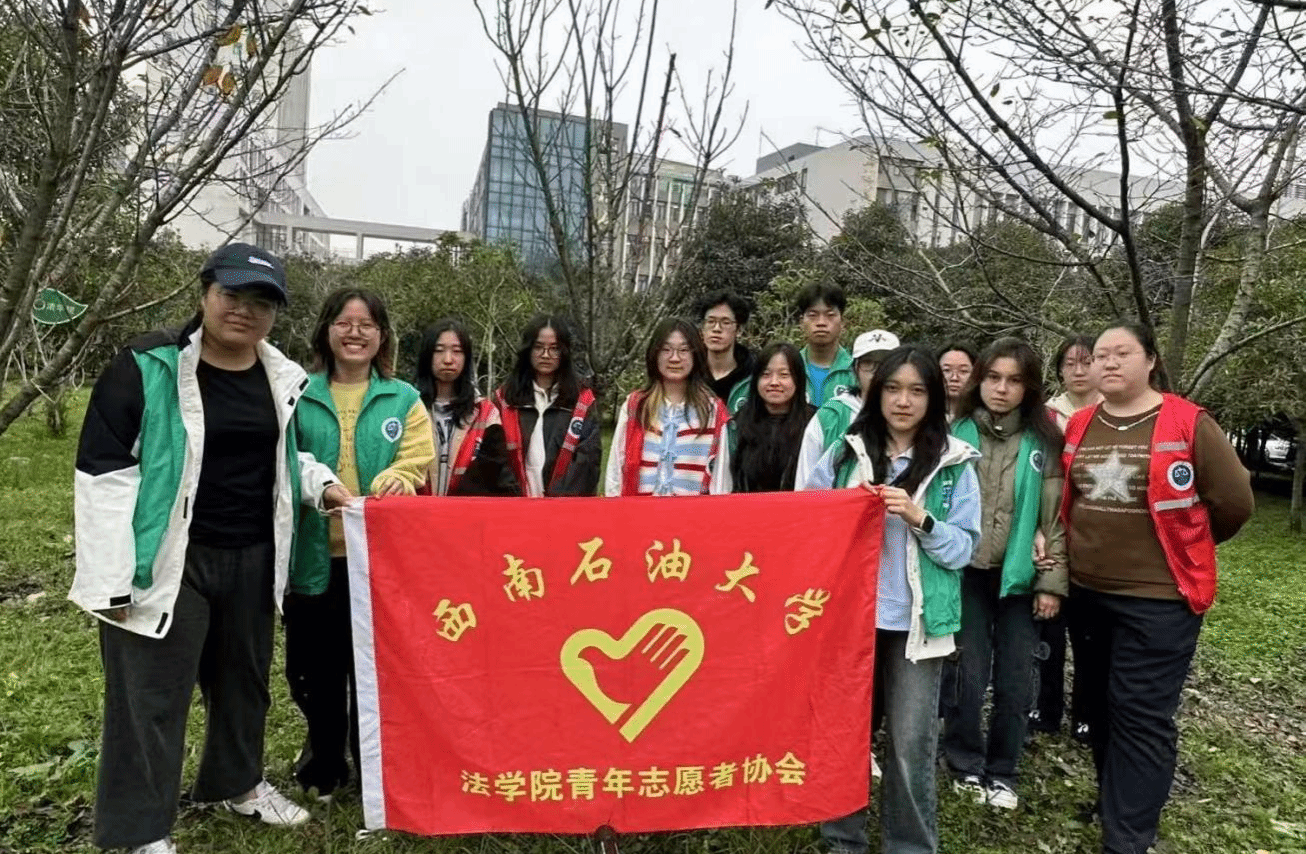 2025年10月30日,秋陽正好,微風不燥,西南石油大學法學院青年志愿者協會再次組織“小法柚”志愿者們走進學子林,開展秋季常態化養護活動。以志愿之力守護校園綠意,用實際行動踐行生態責任。