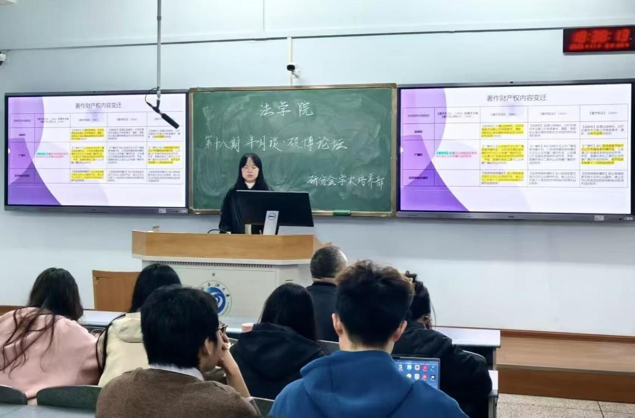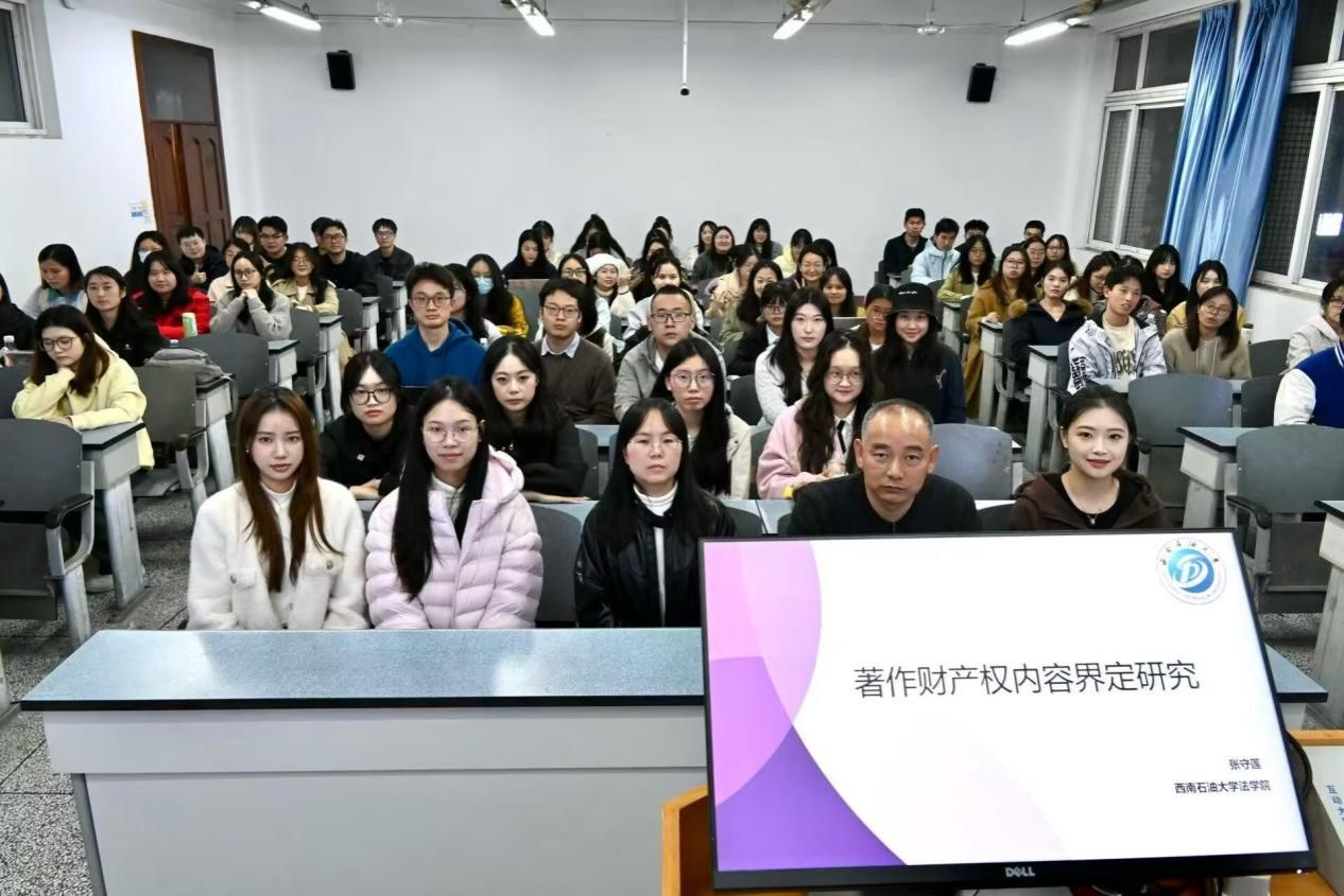 2025年11月6日晚,法學院“西柚法·半月談”第十八期學術講座在博學樓A502教室內順利開展,本期講座的主題為“著作財產權內容界定研究”,由西南石油大學法學院講師,法學博士張守蓮老師主講。