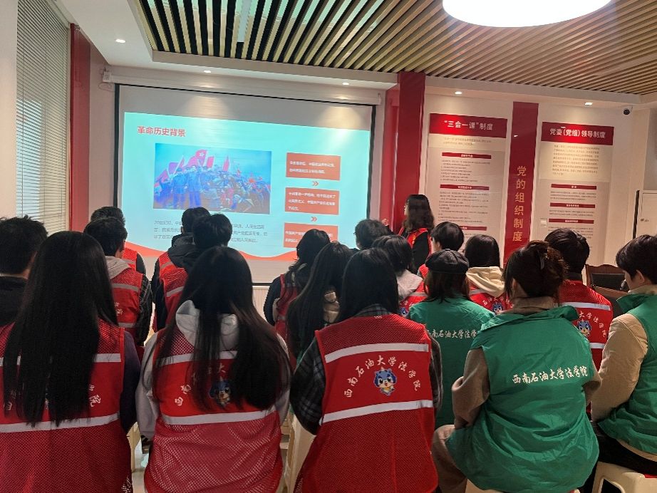 為引導社區黨員與群眾深入領會黨的奮斗歷程、優良傳統與核心精神,進一步提升黨性修養、筑牢信仰根基,2025年11月6日,法學本科2024級第2團支部、法律(法學非法學)碩士2024級團支部、法學碩士2024級團支部成員,走進西南石油大學社區,成功開展了一場以“黨史宣講進社區”為主題的教育實踐活動。