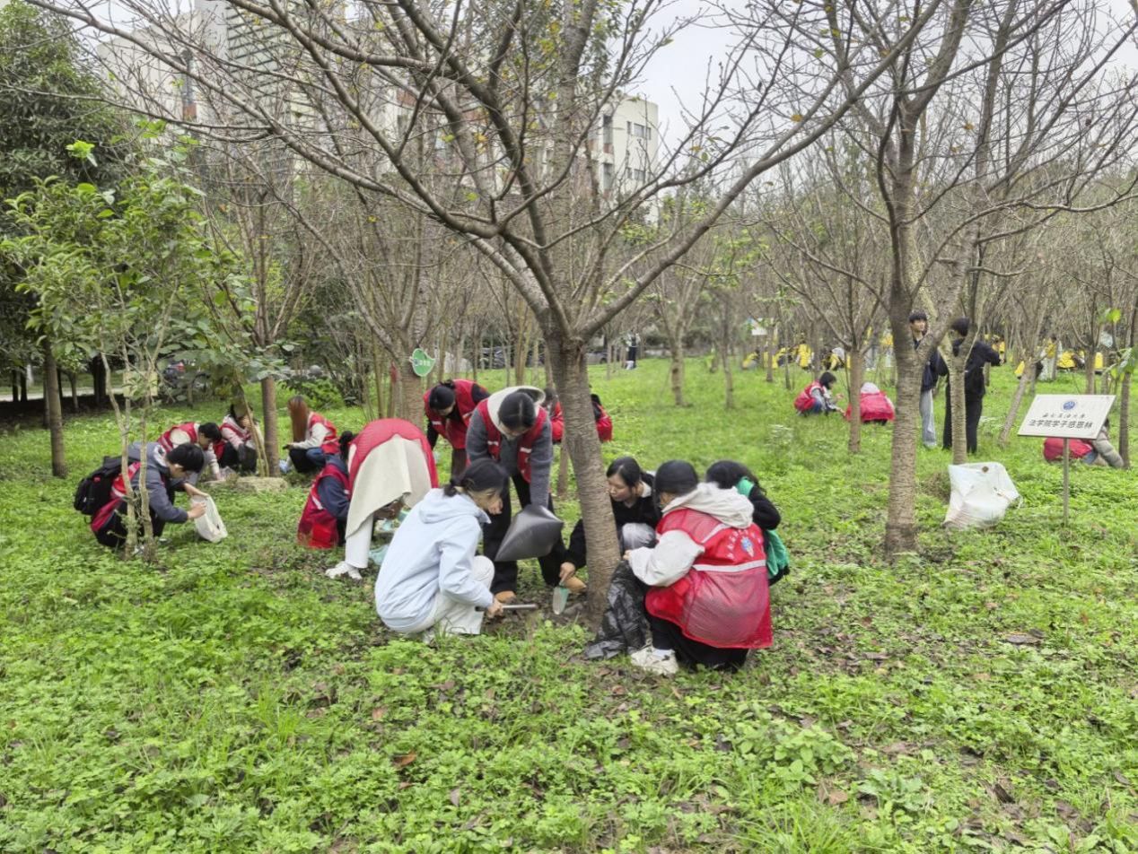 涼意雖侵,熱忱未減。活動現場,志愿者們身著紅色馬甲,在落葉紛飛的晚秋林間認真撿拾垃圾、清理枯枝。面對突然的降溫與陣陣寒風,大家沒有絲毫懈怠,反而越干越有勁,彼此協作、互相鼓勵,在笑語中高效完成了林木撫育和區域整潔工作。短短幾十分鐘,學子林在大家的共同努力下煥發新顏,那一抹“志愿紅”也成為晚秋降溫天氣中最溫暖的顏色,延續著外法柚們愛林護綠、心系自然的奉獻故事。